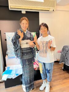 吉岡香里さん(「香里ちゃん」といつも呼んでいるので、これ以降は「香里ちゃん」)との出会いはまだほんの数年前。なのに、なぜか吸い付けられるように仲良くなりました。着物のことは全く分からないし、私にはアートの脳が欠損しているのですが、香里ちゃんの作品に一目ぼれ。そして、単純に一緒にいる時間が楽しいのです。通常私は、友達に支援の話を強要するような形にならないようにと気を付けているのですが、香里ちゃんは、フレンズの活動へもとても興味をもってくださり、常にご自身のお仕事からどうにか支援につながる方法はないかと、模索をしてくださっています。